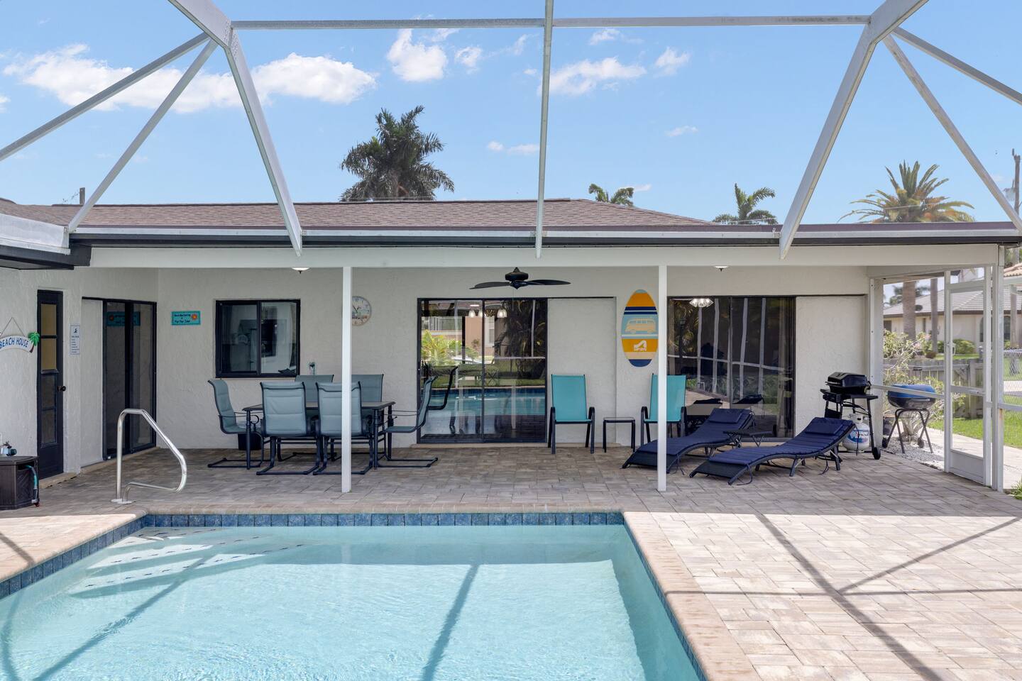 ATTENTION...newly remodeled BEACHY houses with 3 to 90 night stays are also available so please message first! Welcome to our updated 3-bedroom, 2-bathroom vacation haven in the heart of SE Cape Coral. This charming retreat boasts a heated pool and all the essential amenities, ensuring a comfortable stay. Nestled in a quiet location, our property offers easy access to the vibrant downtown Cape Coral scene. Short drive to Fort Myers Beach and Sanibel Island. Come stay with us in SUNNY SWFL!